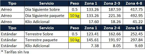 - Guías Amparan hasta 15 kgs pudiendo mandar hasta 68kgs